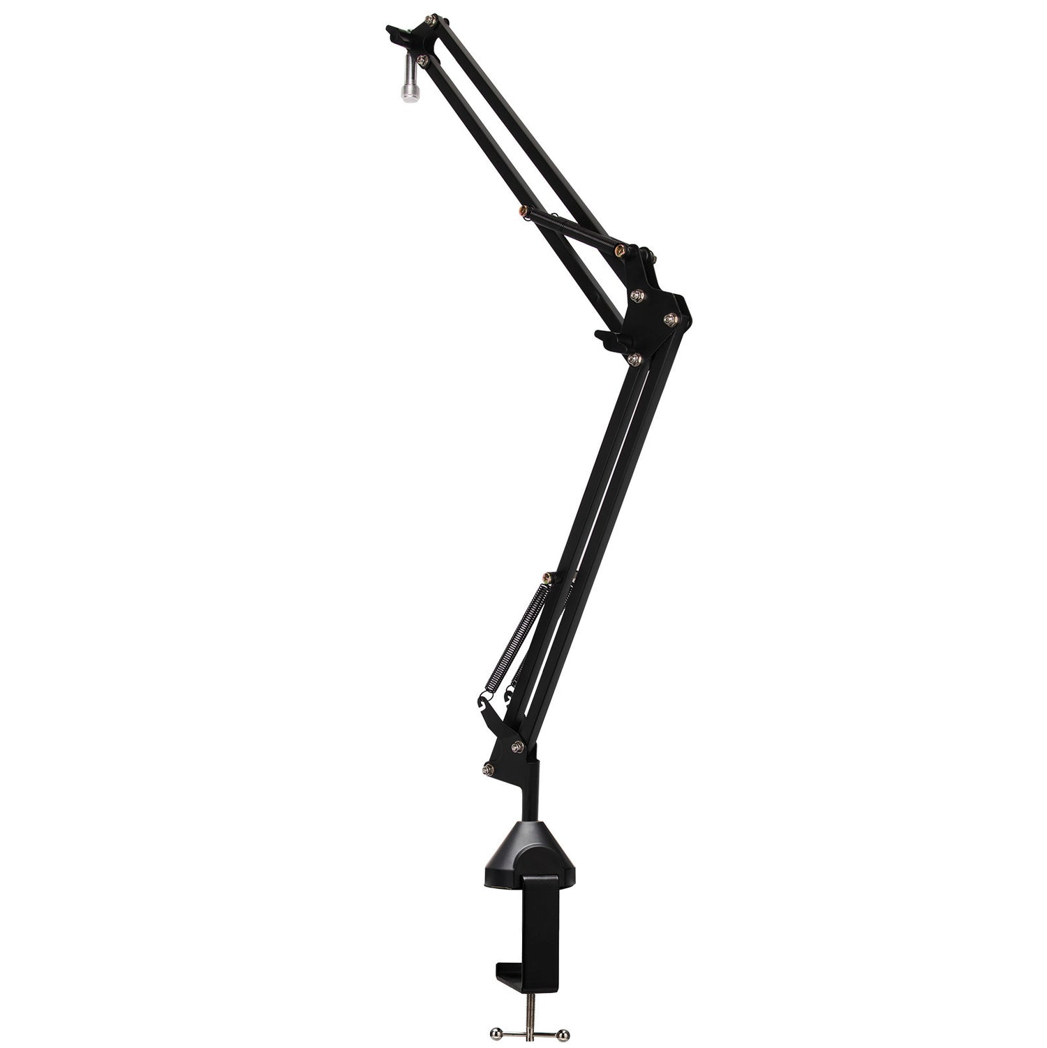 The shock mount features a padded clamp that secures and protects the mic with a locking knob to adjust the angle 180 degrees. A steel frame ensures strength and long life, while flexible cables absorb vibration.