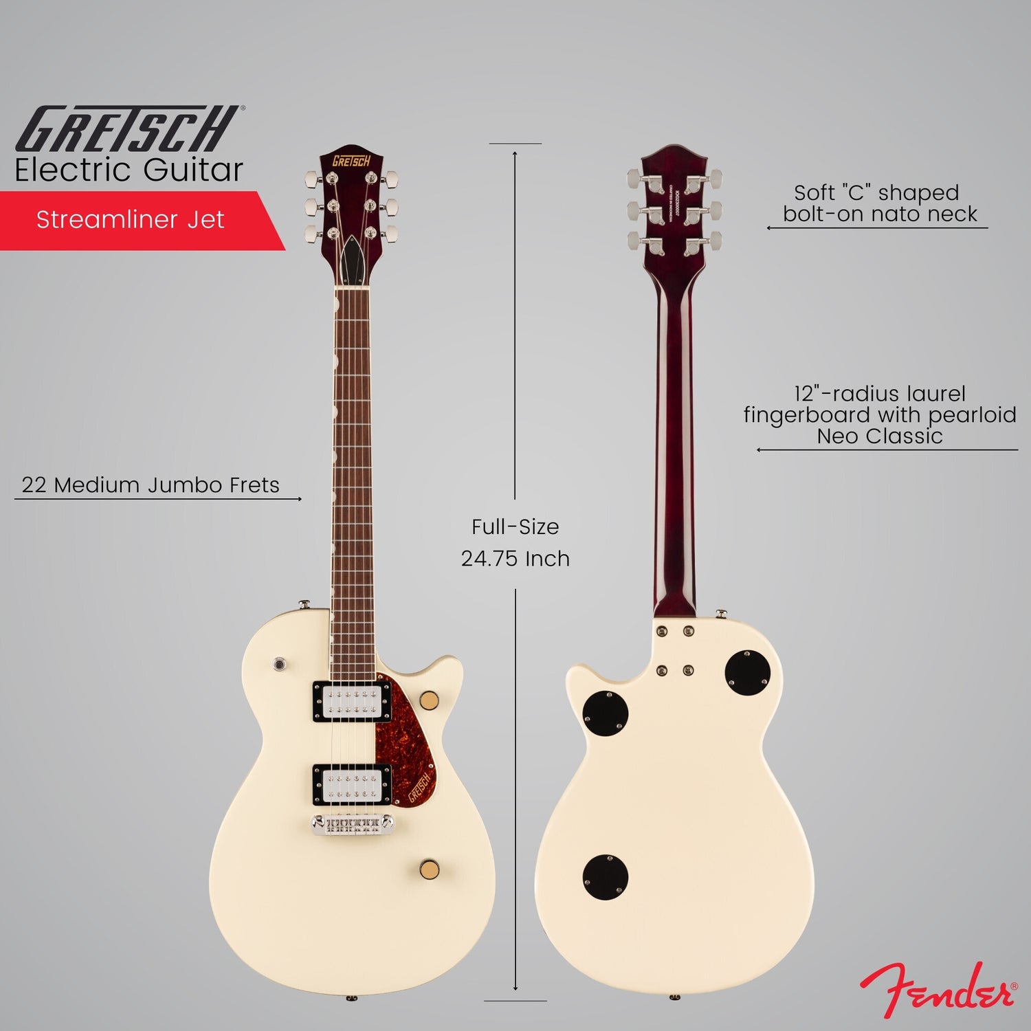 Gretsch Streamliner Jet Club Single-Cut Electric Guitar (Vintage White) Bundle
