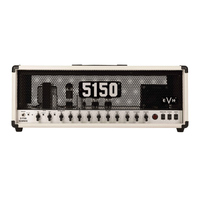 Sporting sophisticated and distinctive EVH style, the 5150 Iconic Series 80-watt head is wrapped in Ivory textured vinyl with a brushed aluminum front panel and black steel grille featuring silver and black 5150 and EVH logo badges. This head is finished off with vintage-style chicken-head knobs, a red LED jewel indicator, and molded black plastic top handle. A high-quality fitted cover is available as an EVH Accessory.
