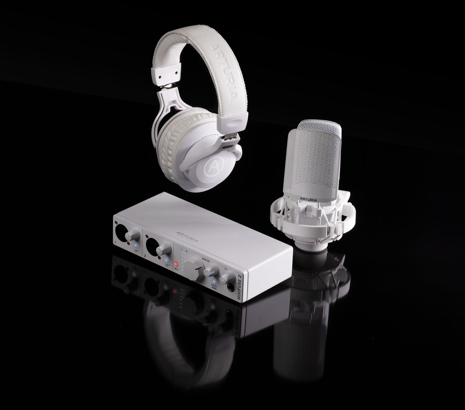 Arturia MiniFuse Recording Pack, White with EF1 Headphones and CM1 Microphone