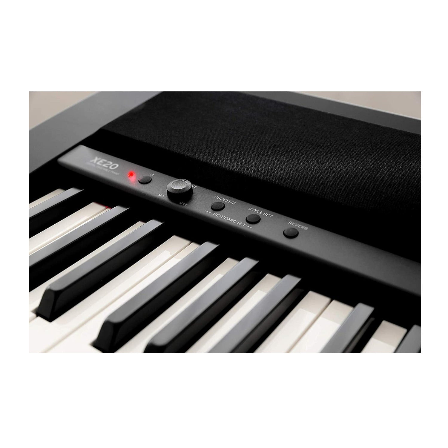 The XE20’s versatile functions are centrally located on a convenient front panel, giving it the same compact style as a typical digital piano with additional accompaniment and customization. The slim and lightweight body goes great in any room with its dedicated stand, or easily carried and placed on a table, giving you more options for enjoying your XE20 Digital Piano.