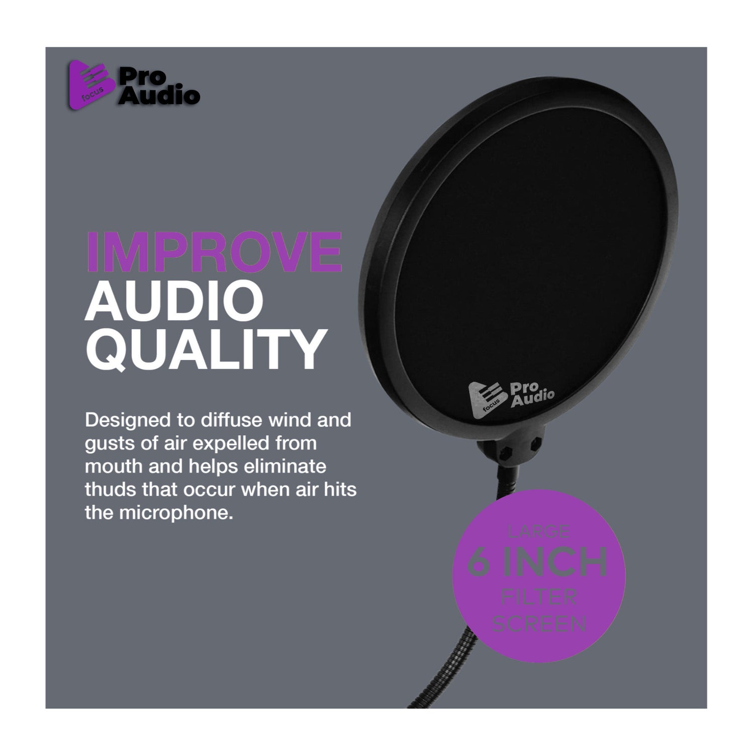 Focus Pro Audio Pop Filter for Broadcasting and Recording Microphones
