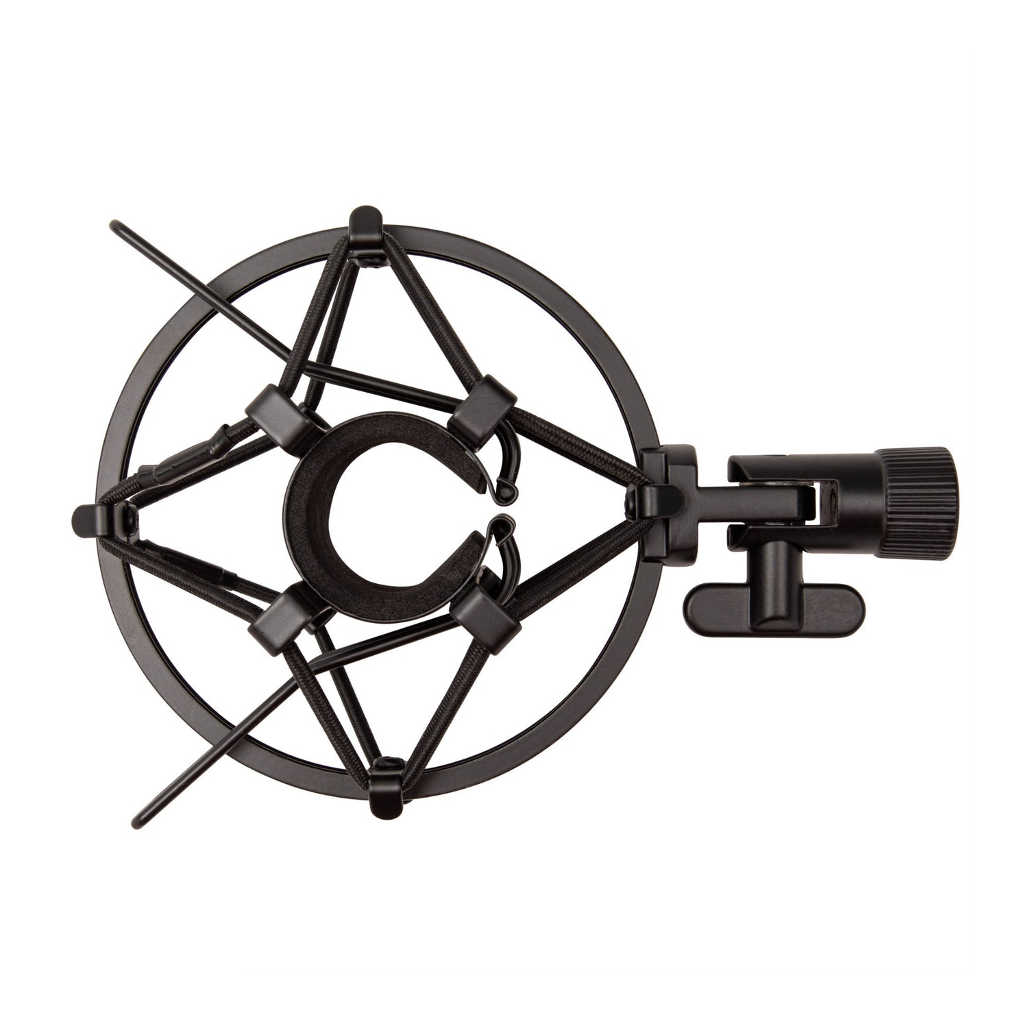 The padded, curved clamp securely fits most mic stands and boom arms without causing damage.