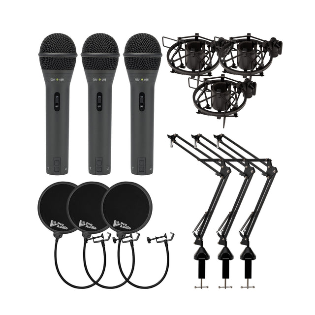 Samson Q2U Dynamic USB Mic with Shockmounts, Boom Arms, Pop Filters (3-pack)