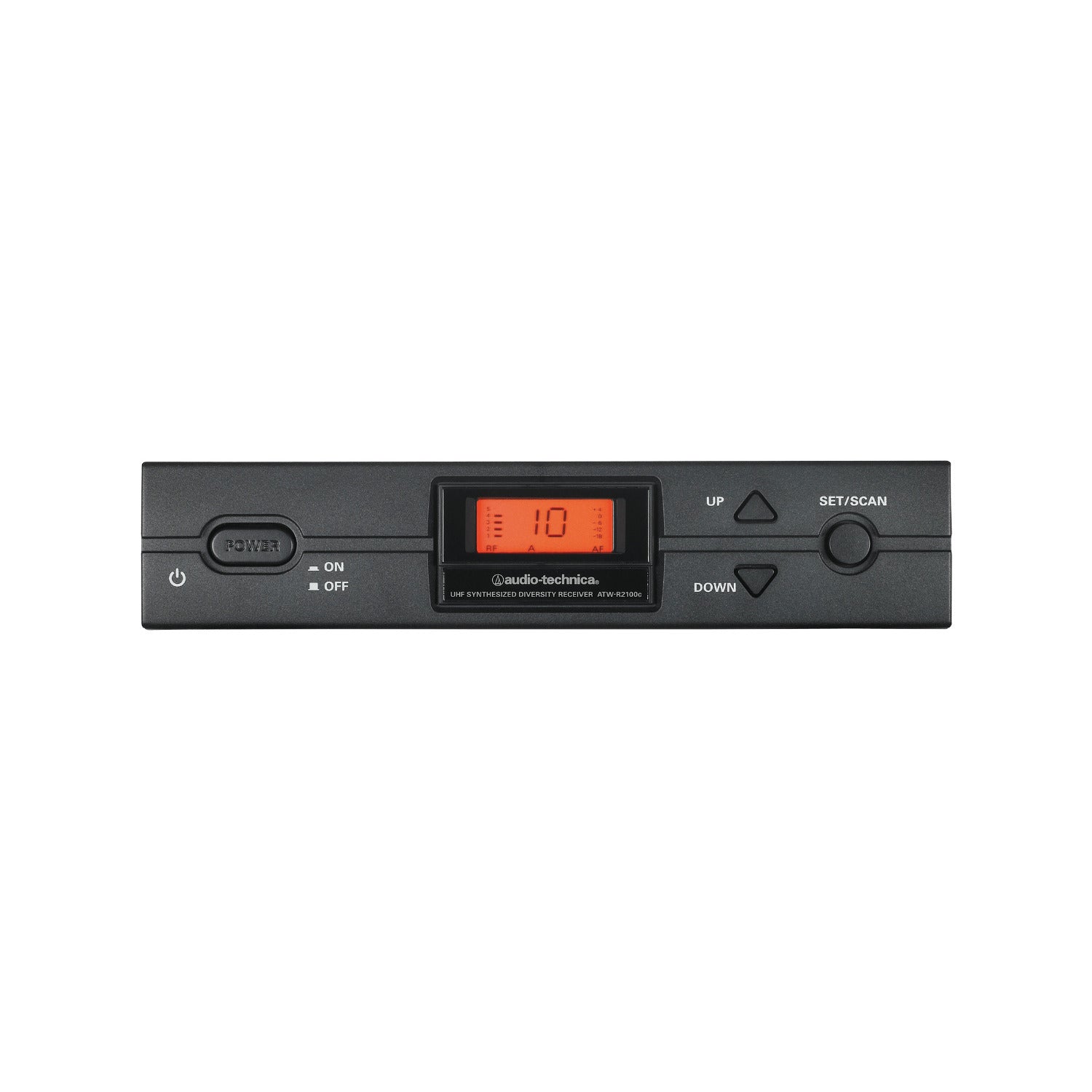 The Audio-Technica ATW-2120CI wireless system combines the ATW-R2100c receiver and ATW-T220c handheld cardioid dynamic microphone/transmitter for reliable UHF performance and clear vocal reproduction. Designed for live sound and speech applications, it features 10 selectable frequencies, True Diversity reception for drop-out-free audio, and Tone Lock squelch to minimize interference