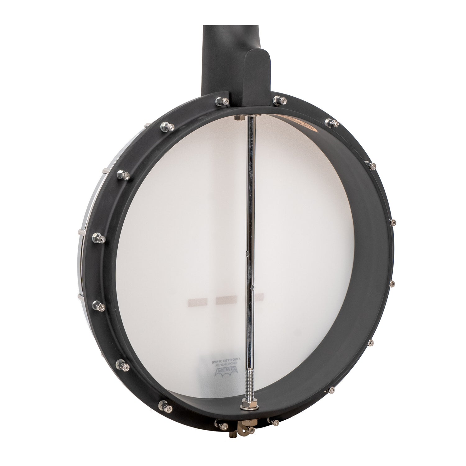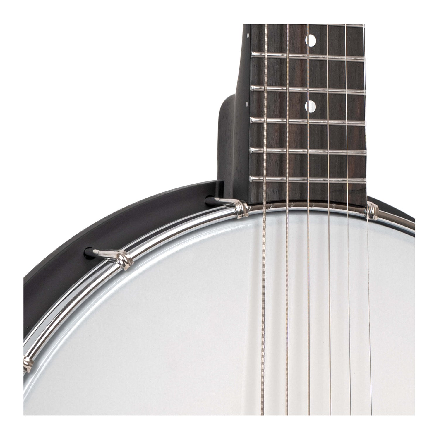 Every component of the AC-6 Mini is crafted for performance and ease of use. It features a sealed guitar-style tuner setup for precise tuning, a Maple bridge with ebony cap for crisp tone transfer, and a Terminator tailpiece for solid string anchoring. The 11in Remo LC smooth head, 16 bracket tensioning system, and flat bar tension hoop all work together to deliver consistent, responsive tone.