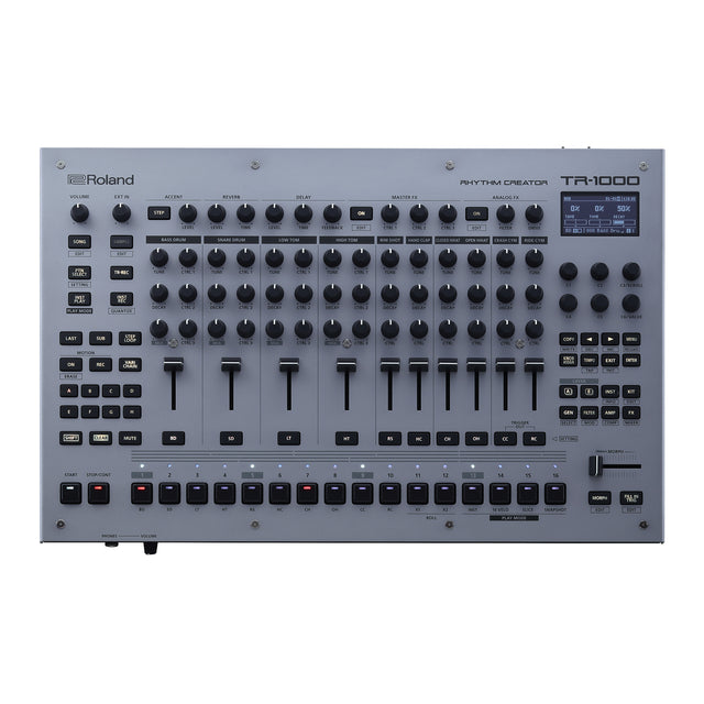 The Roland TR-1000 is a professional drum machine designed for producers, performers, and electronic musicians who demand versatility and high-quality sound. With 2,048 user drum kits and patterns, a multi-layer step sequencer, and an extensive sound engine featuring Analog, ACB, FM, PCM, and Sample tones, it delivers limitless creative possibilities. The built-in sampler supports WAV, AIFF, MP3, FLAC, and M4A formats with up to 16 minutes of sampling per sound. A comprehensive effects suite, including FILTER, AMP, COMP, INST FX, REVERB, DELAY, MASTER FX, and ANALOG FX, enhances every performance. Featuring 46 GB of internal storage, USB connectivity, a graphic OLED display, and multiple output options, the TR-1000 combines professional-grade functionality with intuitive control and robust design for studio and live settings.