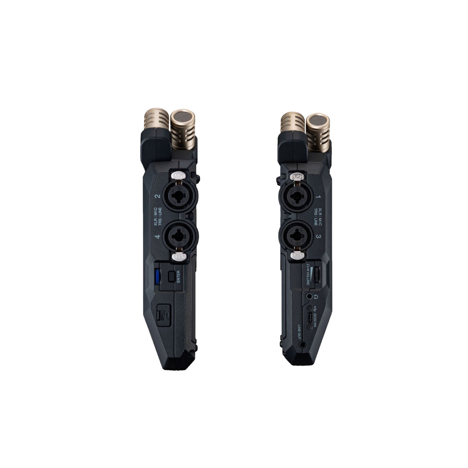 Voice Guidance accessibility for visually impaired users. USB-C 32-bit float interface for PC and mobile devices while simultaneously recording to SD card. Supports BTA-1 Bluetooth Adapter for wireless timecode sync and iOS H6essential Control App. Record to SD cards up to 1 TB. Runs on 4x AA batteries with 10-hour battery life or USB-C bus power.