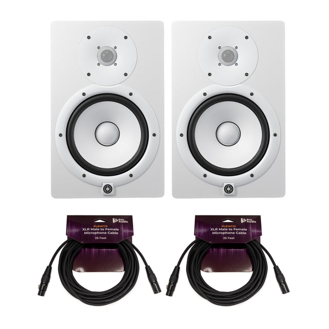 Yamaha HS8 8 Inch Powered White Studio Monitor 2 Pack with 2x Cable Bundle