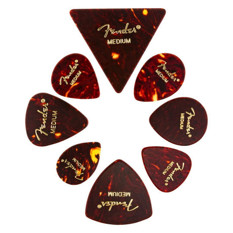 Fender Classic Celluloid Guitar Picks Shape Medley, Tortoise Shell, Medium, 8-Pk