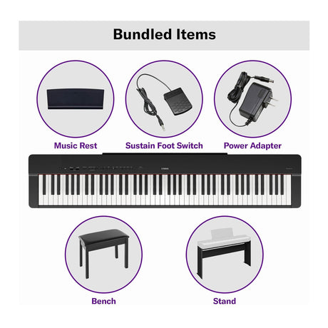 Yamaha P-225B 88-Key Deluxe Digital Piano with Stand and Bench Bundle