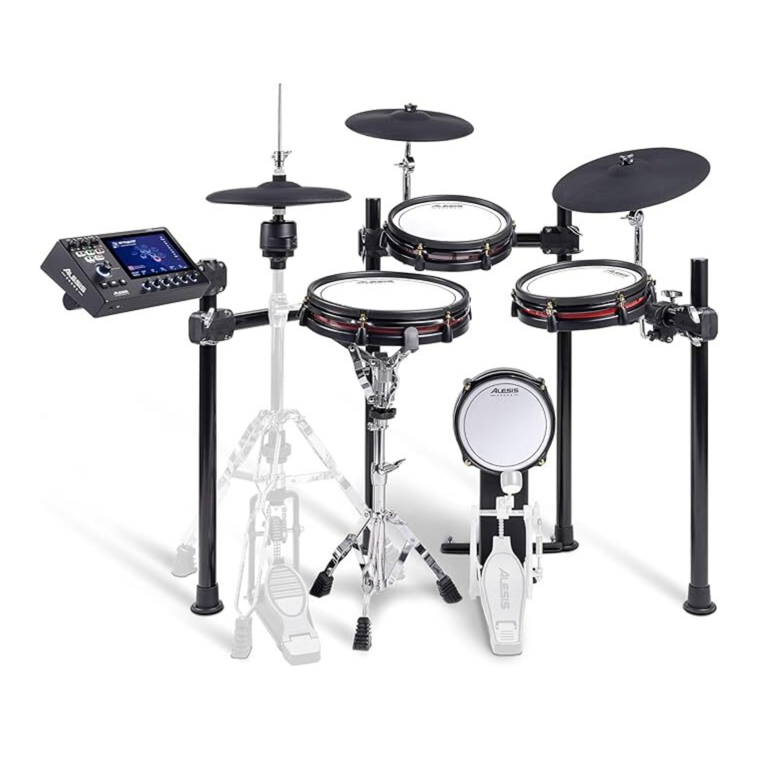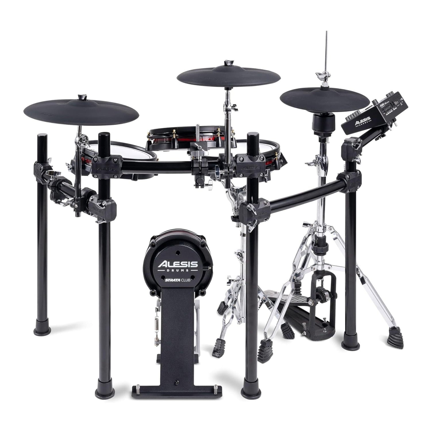 Experience pro-level drumming in a compact footprint with the Alesis Strata Club Electronic Drum Set. Designed for players of all levels, the Strata Club features responsive dual-zone mesh pads, triple-zone 360-degree ARC cymbals, and a space-saving 8-inch kick tower. At the heart of the kit is the powerful Core drum module with a 7-inch touchscreen and BFD sound engine, offering 75 preset kits, over 144,000 multi-sampled sounds, and unlimited user kit customization. With Bluetooth, USB/MIDI connectivity, and a sturdy 4-post rack, the Strata Club is perfect for practicing, recording, or live performance in tight spaces. Includes a 90-day Drumeo subscription and BFD expansion pack to fuel your drumming journey.Please note that the kick pedal and hi-hat are not included.