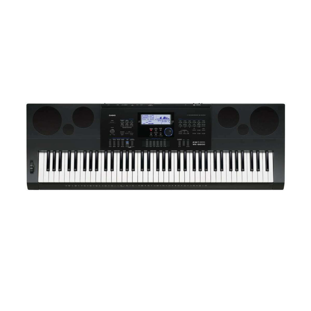 The Casio WK-6600 features a piano-style touch-response keyboard, song sequencer, tone editor, multiple digital effects, mixer, performance registration memory, USB MIDI interface, SD card storage, and hundreds of editable tones. The WK-6600 offers a pitch bend wheel, a back lit display, music presets, and 670 individual tones in a portable design. The Casio WK-6600 has all the tools you need to practice, compose and perform. The extensive list of features and the sound from the high-output 2-way bass reflex sound system found in this music workstation will give you the chance to bring your musical ideas to life and discover the musician in you.