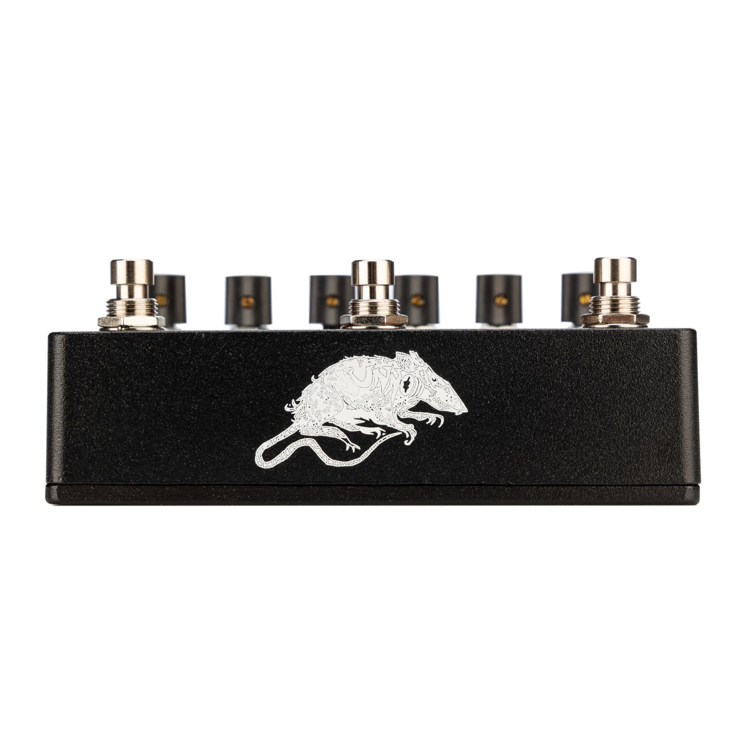 An octave fuzz inspired by the Shin-Ei FY2 & FY6 units leads the circuit into a brutal big box rodent-inspired distortion, recreated with the best components, and including a three-way clipping switch (OpAmp, Asymmetric & Symmetric). The second stage is a purely clean boost to further overdrive the preamp tubes of your vintage system into -scaped harmonics, and feedback overtone bliss.
