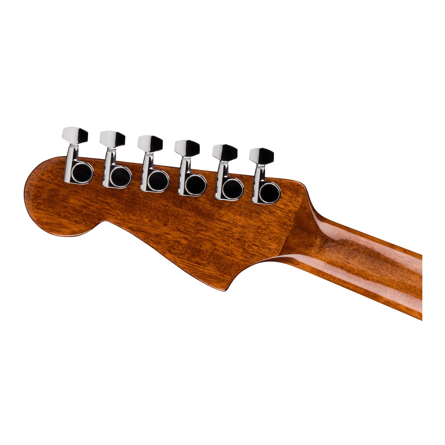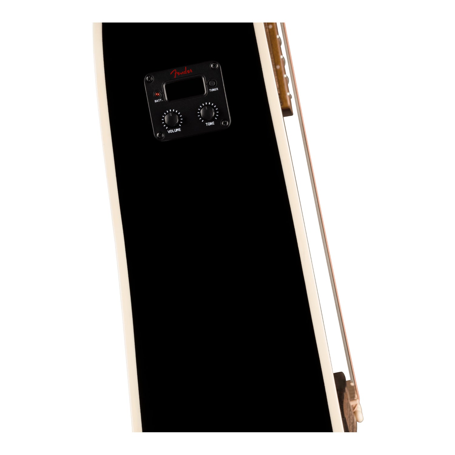 The 25.5-inch scale neck with a slim C profile ensures effortless playability, while the oiled walnut fingerboard and bridge provide smooth, comfortable action. Equipped with onboard Fender electronics and a built-in tuner, this guitar offers high-quality amplified sound for live performance, recording, or effects. Sealed gear tuning machines guarantee precise tuning stability, and the long-lasting gloss finish adds a sleek, professional look.