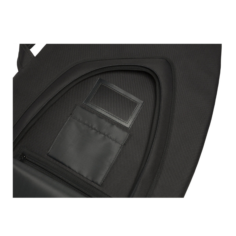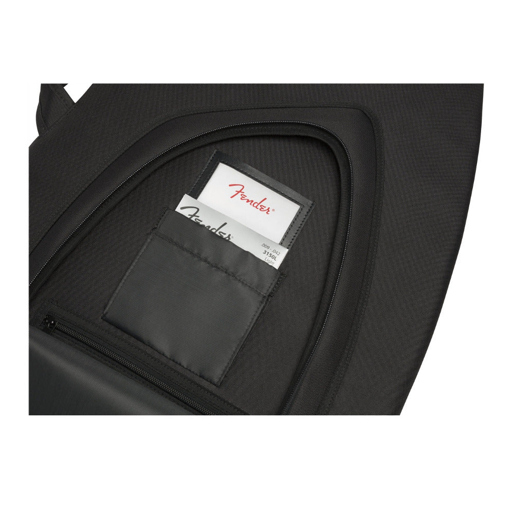 Fender's 610 Series Guitar gig bag is a stylish and affordable way to keep your electric guitar safe while traveling. Featuring our iconic asymmetrical Fender shape, its durable outer layer is constructed of tough 600 Denier polyester that protects against impacts while avoiding ripping and tearing. Its interior is filled with 10mm padding and lined with soft touch microfiber that keeps your instrument secure while preventing potential finish damage. The 610 gig bag also comes with a comfortable two-piece handle and ergonomic air mesh backpack straps with easily adjustable ladder lock buckles, so you can comfortably carry your instrument without unnecessary physical strain. Plus, the front storage pocket offers additional storage space for small accessories and a business card window.