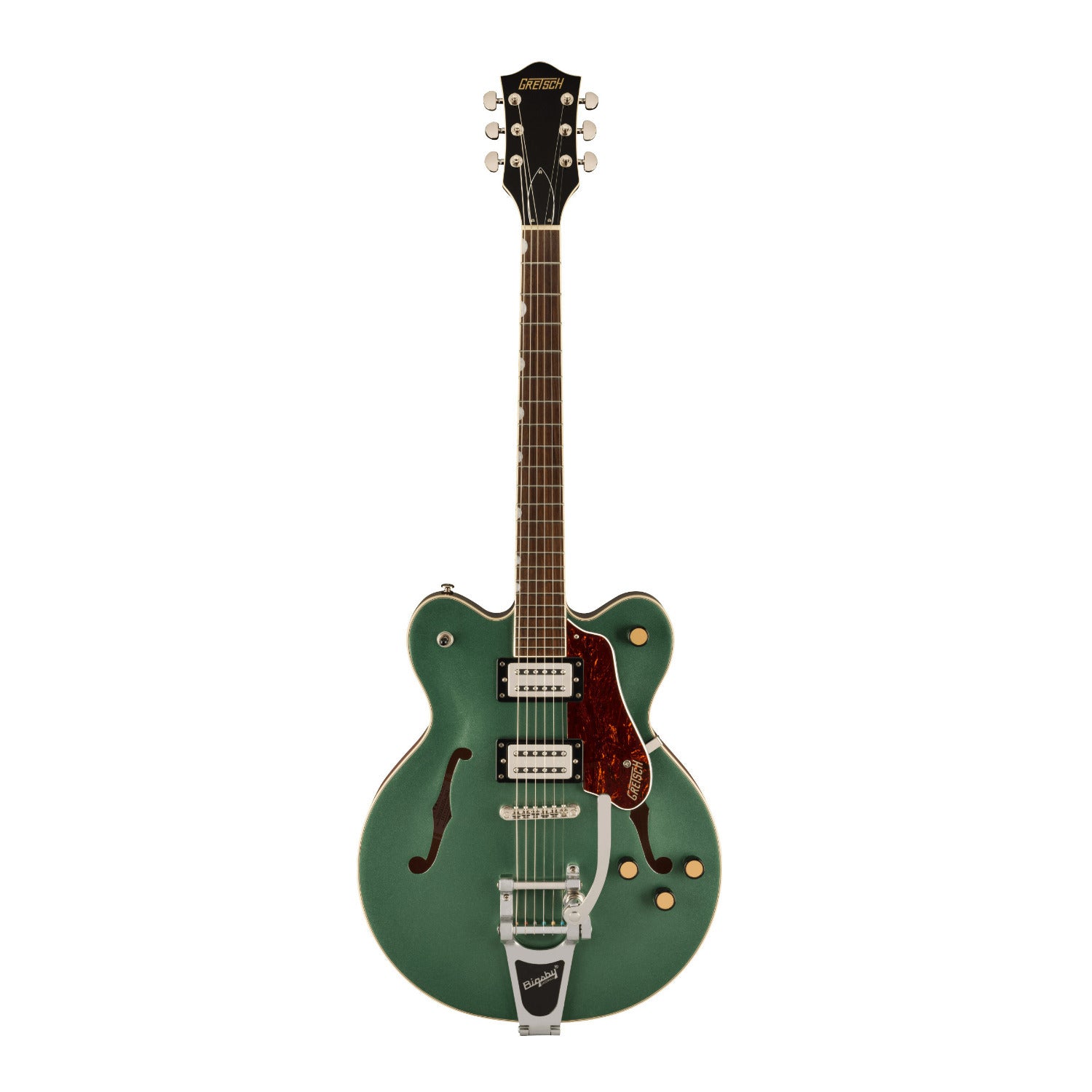The Gretsch Streamliner Collection revitalizes the best elements from the past and combines them with exciting new features to deliver exceptional performance, sound, and style at an incredible value. The G2622T Streamliner Center Block Double-Cut with Bigsby in Steel Olive finish bursts into the modern era with powerful sound and style. The sleek G2622T is designed for the guitarist who demands more than the mundane from an instrument—more performance, more style, and most importantly, more volume - while retaining everything you expect from a Gretsch.