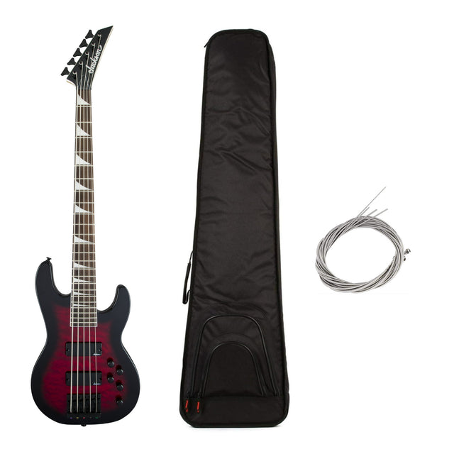 A thunderous bass loaded with vibe and value, the JS3VQ is available in a striking Transparent Red Burst to finish with black hardware and a Jackson-pointed 5-in-line headstock.