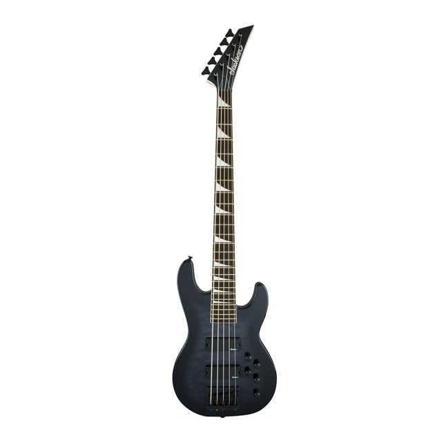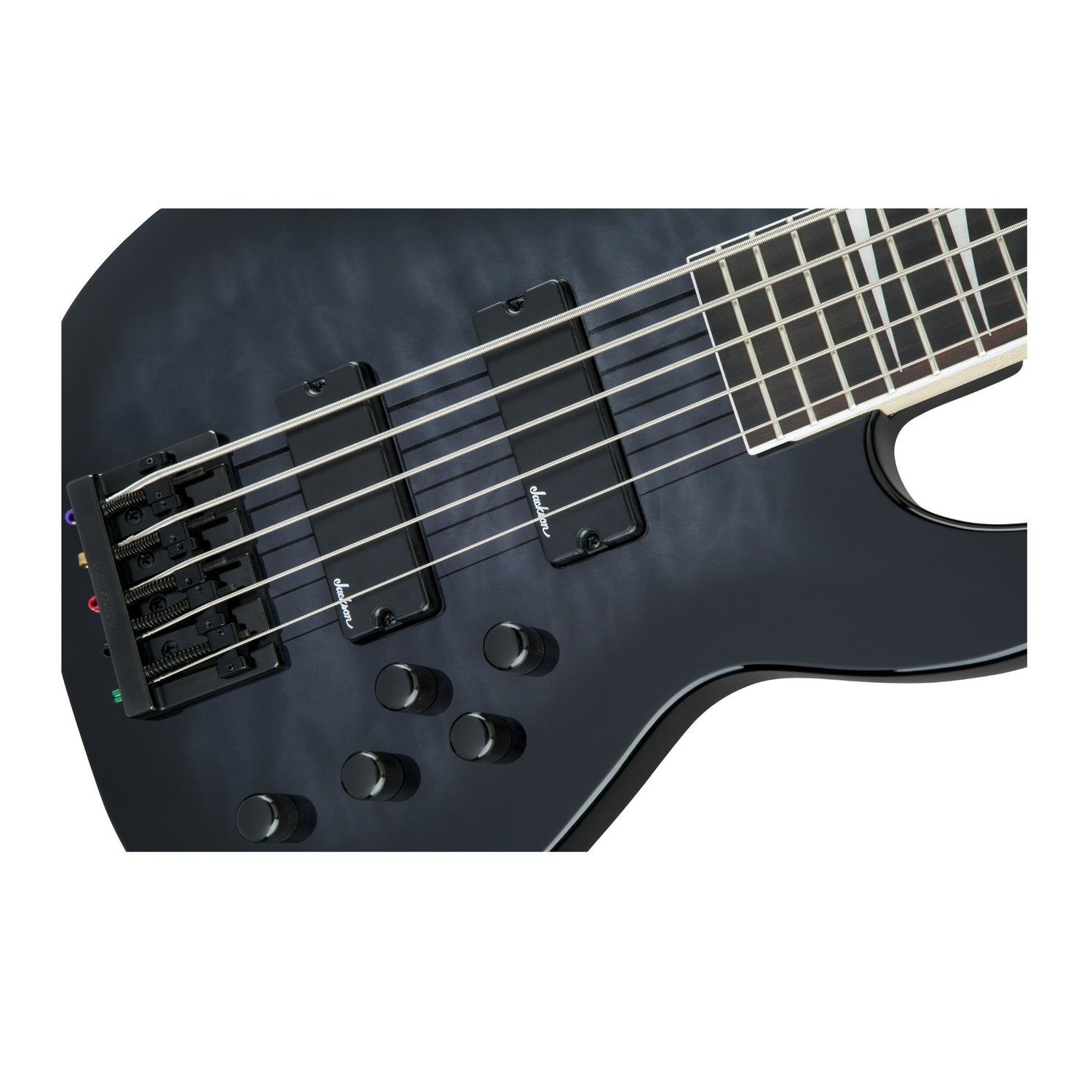 A thunderous bass loaded with vibe and value, the JS3VQ is available in a striking Transparent Black Burst to finish with black hardware and a Jackson-pointed 5-in-line headstock.