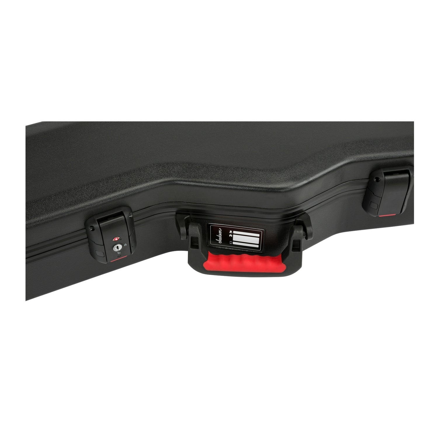 The Jackson Monarkh String Molded Case is completely re-designed from scratch to provide the absolute best in guitar protection. This case is specifically formed and shaped to fit all of the unique Jackson guitar shapes and is designed to fit the Monarkh 6-and-7-string models. It includes heavy-duty aluminum channeling with super-quality ABS material for optimal durability. The TSA-approved latches keep the case locked and secured during transport.
