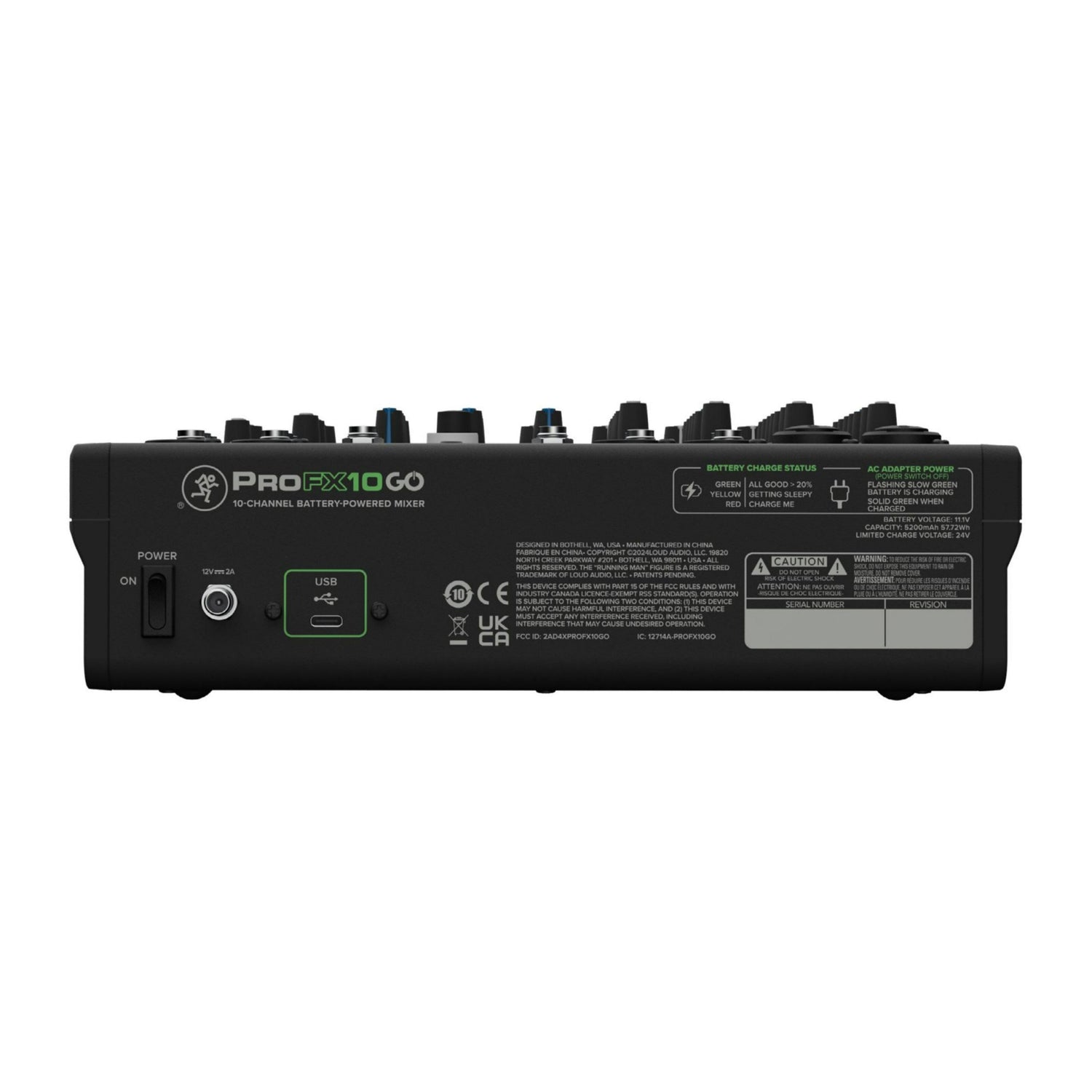 The Mackie ProFX10 GO Battery-Powered Mixer is pro on the go. Mackie ProFX10 GO is a professional analog mixer and USB-C audio interface that can run on a rechargeable, swappable battery for up to 8 hours, so you’re always ready to mix on the GO.