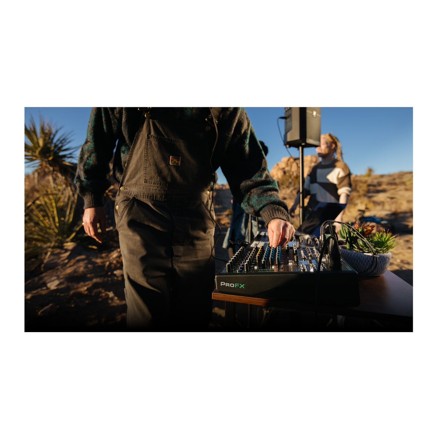 ProFX10 GO lets you go anywhere and brings the incredibly low-noise, high-headroom performance of four award-winning Onyx preamps. With up to 60 dB gain, 100 Hz low-cut filters, and 48V phantom power, these preamps can handle any mic you throw at them.