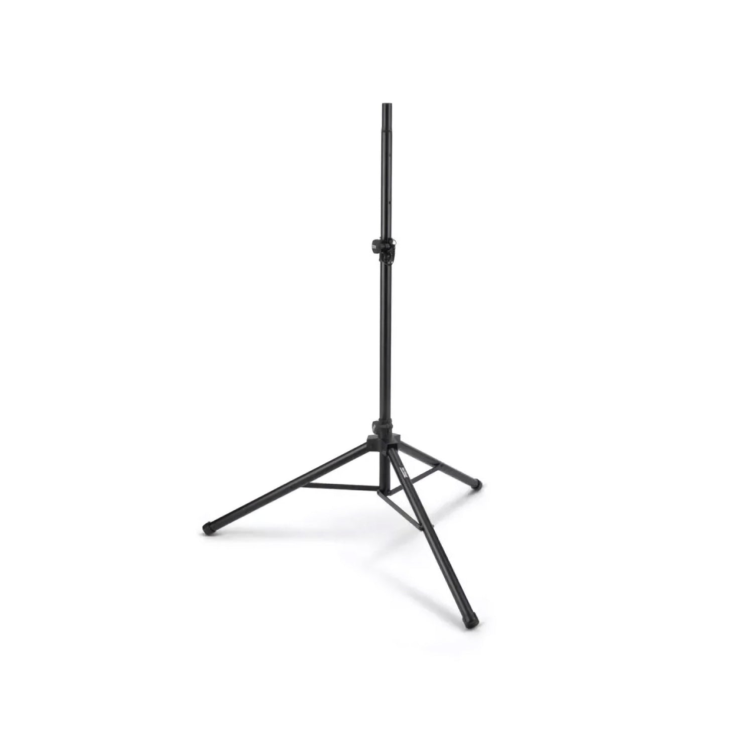 This versatile, strong, lightweight, Focus Pro Audio All-Aluminum Speaker Stand features a reversible pole that supports all standard speaker cabinet mounting sockets. The stand's height adjusts to accommodate a variety of applications and locks in place to provide reliable positioning. Its heavy-duty construction, braced bases, and nonslip feet work together to deliver exceptional stability and load balance even on irregular surfaces. The durable black finish preserves the professional appearance of any space. The tripod bases fold flat for convenient storage and ergonomic transportation.