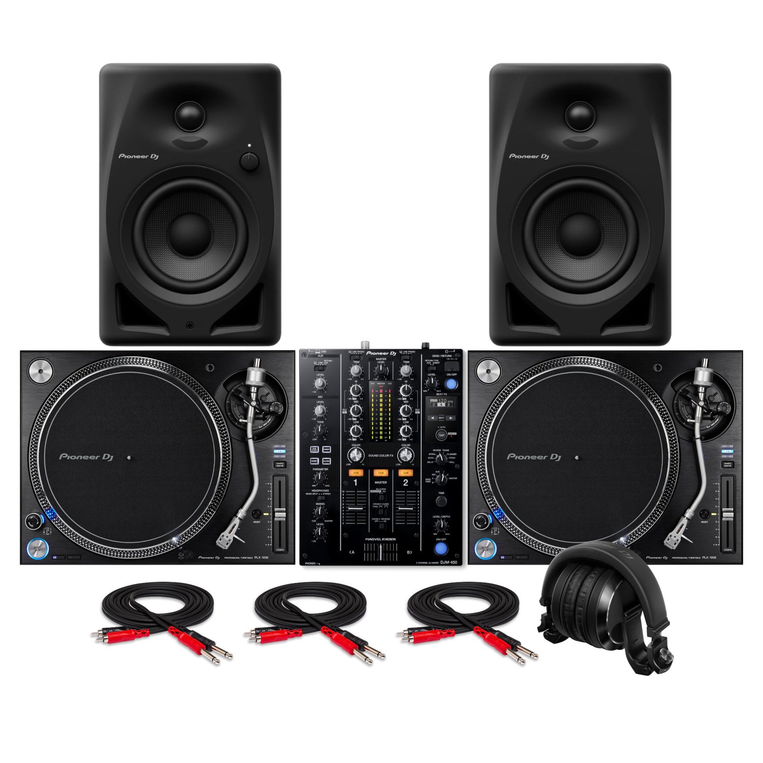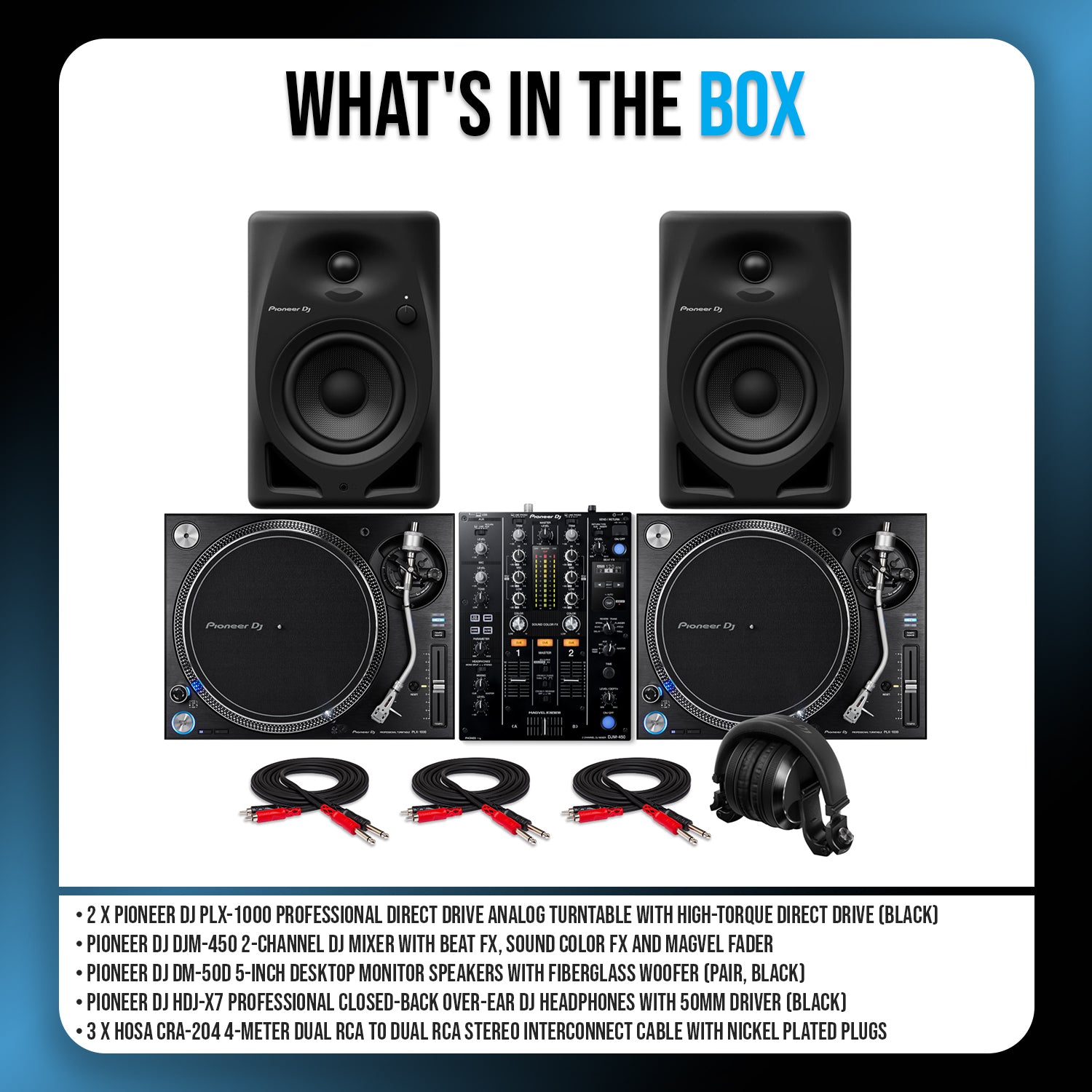 Pioneer DJ PLX 1000 Direct Drive 2 Pack Analog Turntable and DJ Mixer Bundle