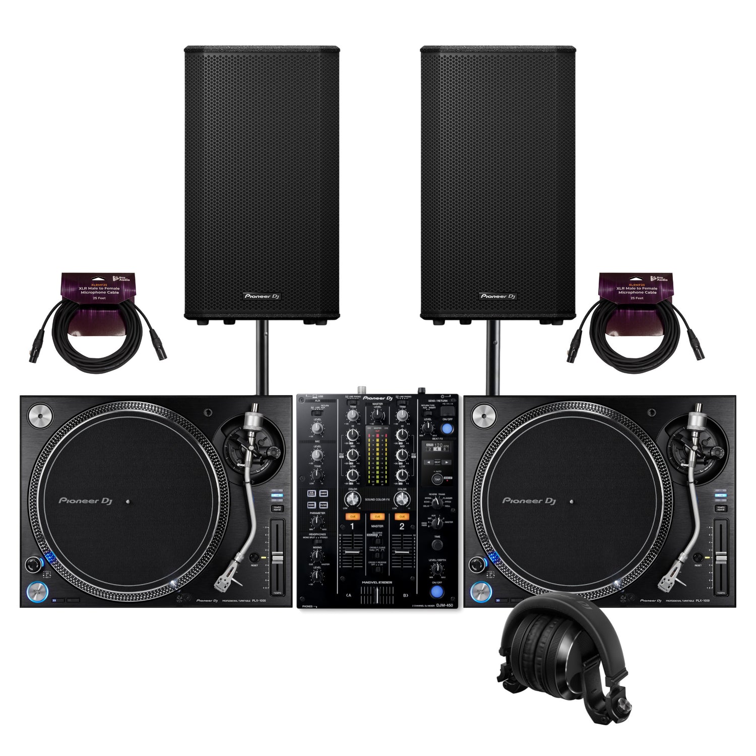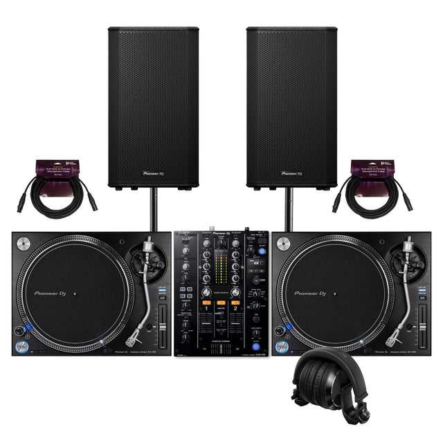 Pioneer DJ PLX 1000 2 Pack Analog Turntable and Active Loudspeaker Bundle
