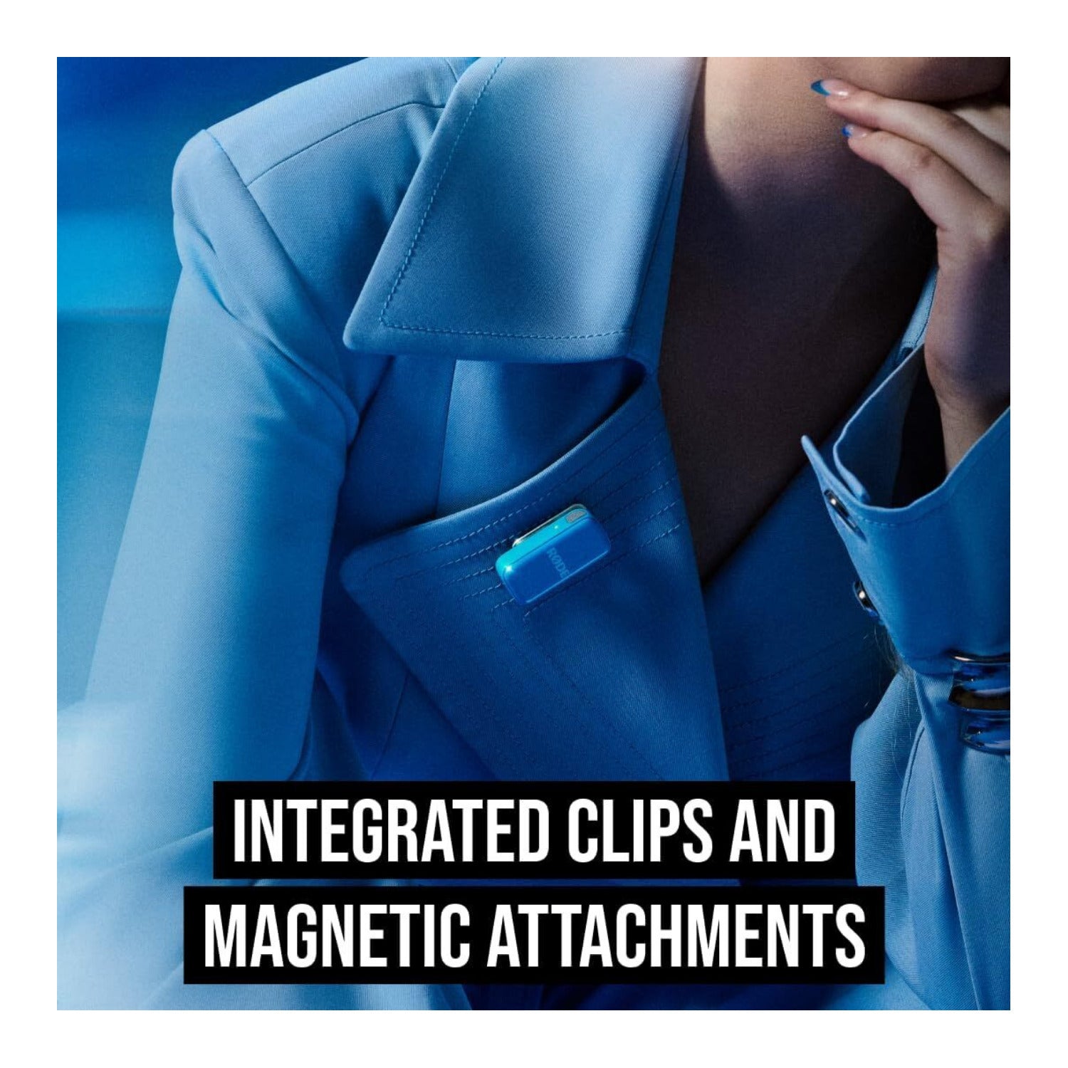 Each transmitter features a built-in omnidirectional mic that captures consistent audio from all directions. The tiny design stays unobtrusive on camera, and you can mount it using the included clips or magnets for flexible placement.