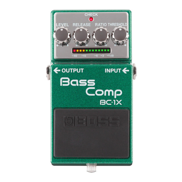 The BC-1X was designed with pro practicality in mind. The 18-volt input circuitry provides ample headroom without clipping, even with the hottest signals from active basses. A 12-segment gain reduction indicator clearly displays the amount of compression at all times, a high-end feature rarely seen in stompbox compressors. The pedal’s noise performance is extremely low in comparison with other compressors, another huge benefit brought by BOSS technology. And with the road-proven BOSS compact chassis, the BC-1X ensures bulletproof reliability for years of demanding pro use.