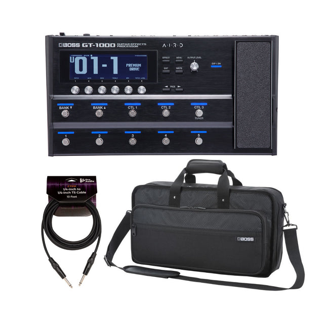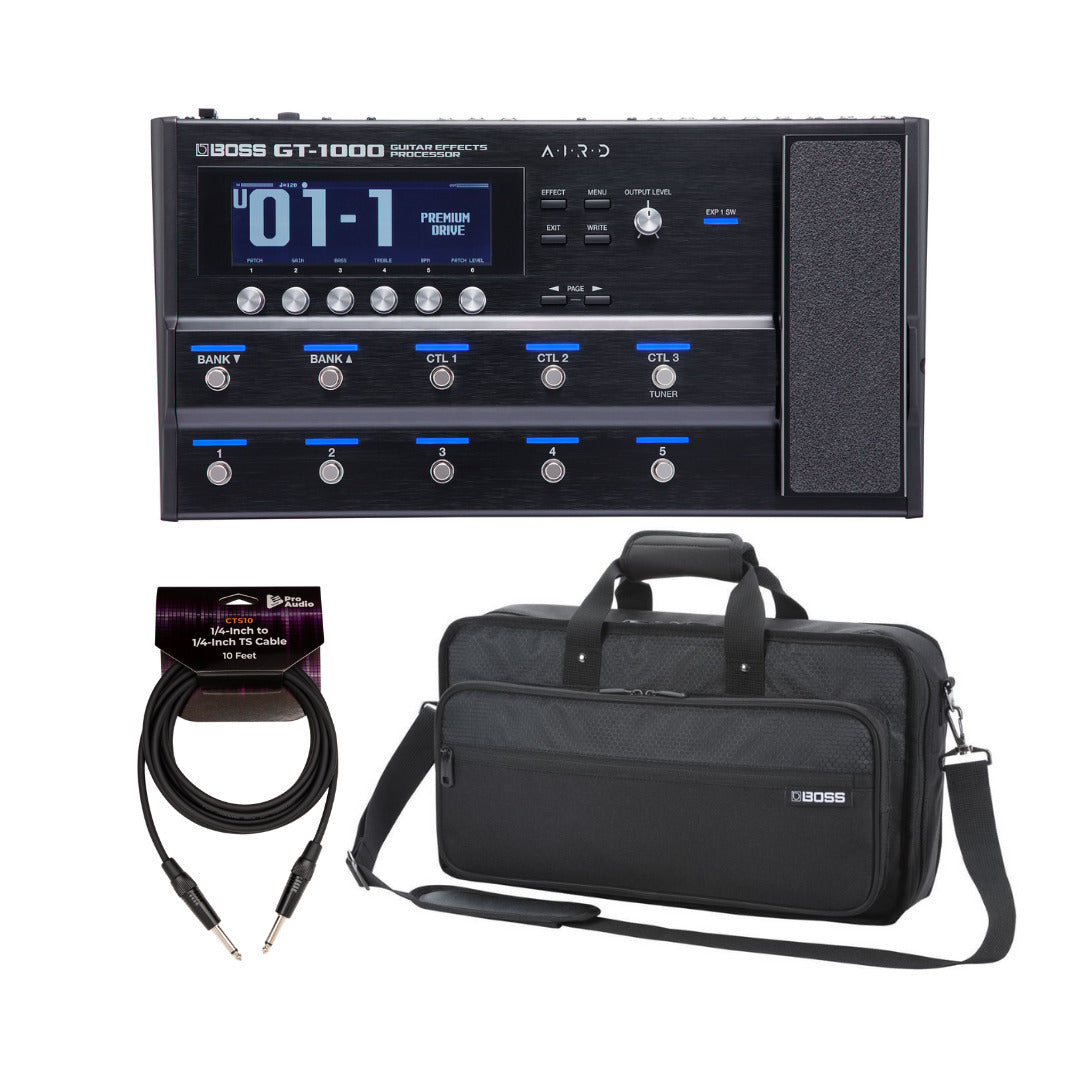 BOSS GT 1000 Guitar Multi Effects Processor with Case and Guitar Cable Bundle