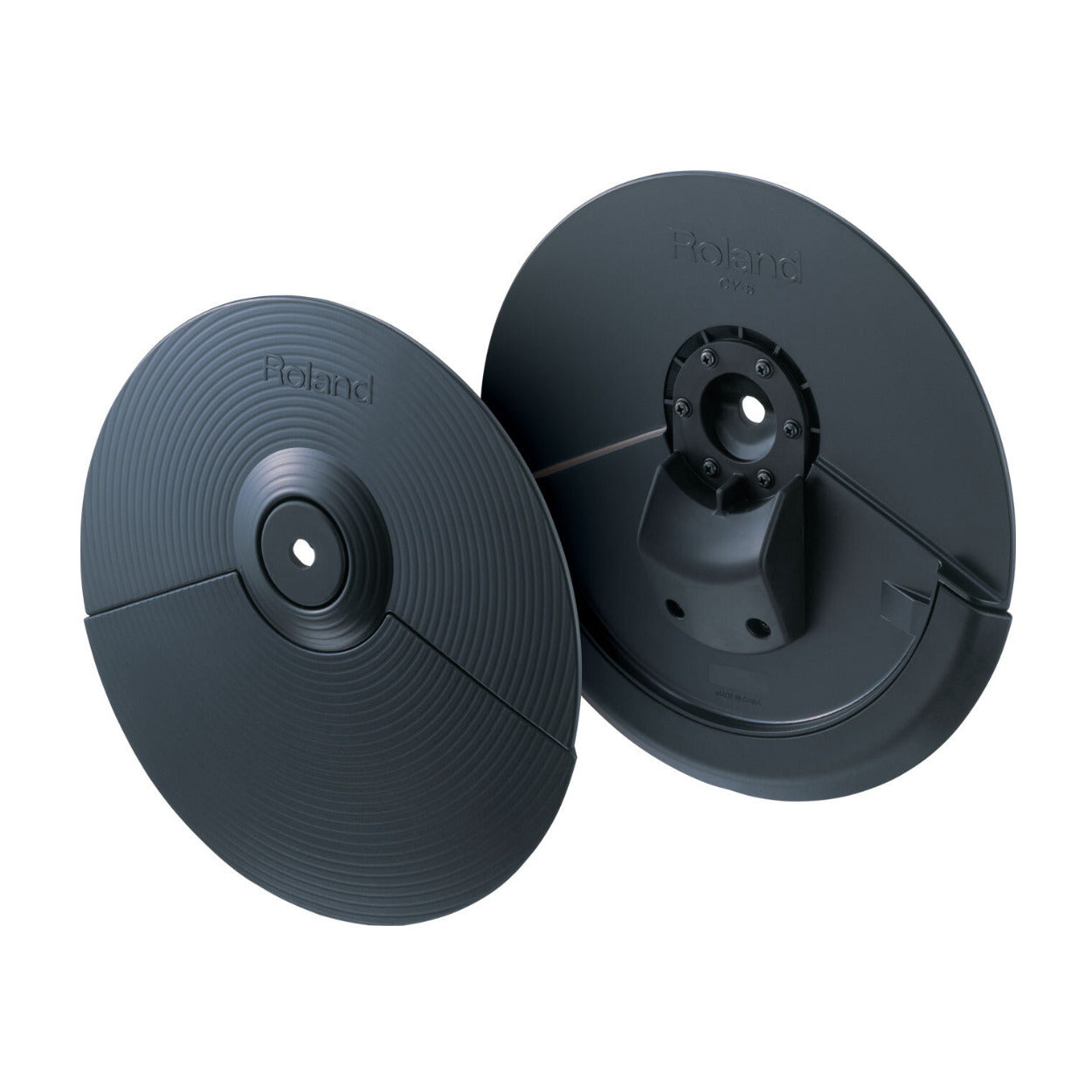 In most V-Drums modules, the sensor system can be configured for use as a ride cymbal (bow/bell) or crash cymbal (bow/edge). Three-way triggering is supported via two cables with advanced V-Drums modules, providing independent sounds on the edge, bow, and bell. The cymbal can also be choked simply by grabbing the edge–just like a real acoustic cymbal.