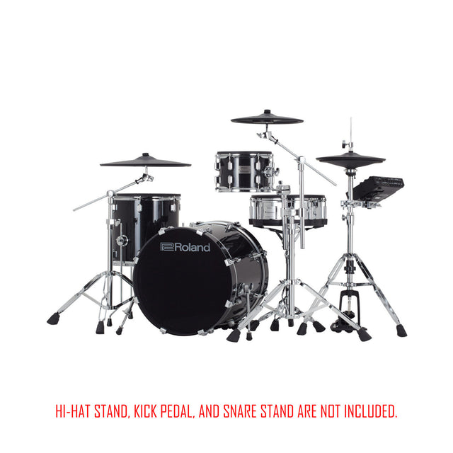 With the impressive looks, familiar layout, and inspiring playability of a high-end acoustic kit, the VAD504 makes any drummer feel instantly at home. There's a 14-inch stainless steel snare, 10-inch rack tom, 14-inch floor tom, and 20-inch kick constructed with full-depth wood shells, adding to the authenticity and providing a genuine acoustic feel under the sticks and beater. A full complement of cymbals includes a 14-inch V-Hi-Hat, a 14-inch crash (with a thin profile and textured finish), and an 18-inch ride for superior playability and a natural appearance on stage.