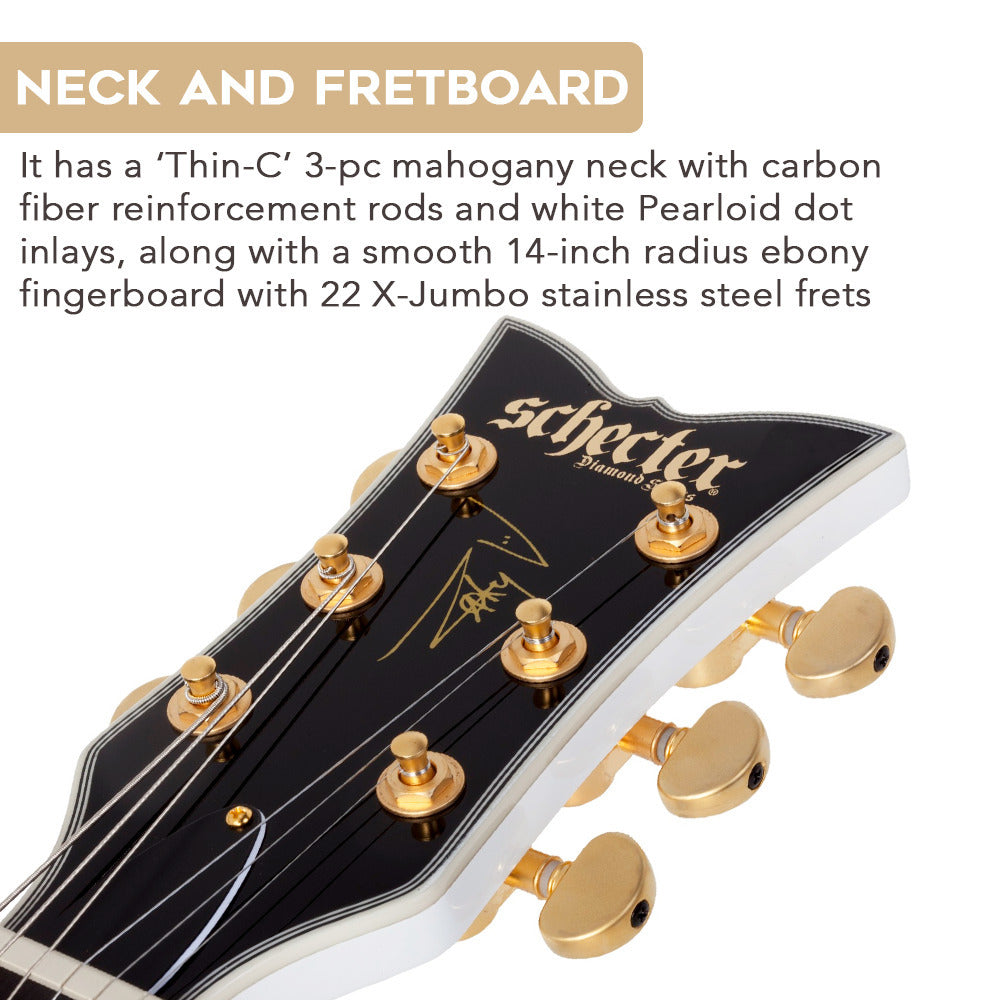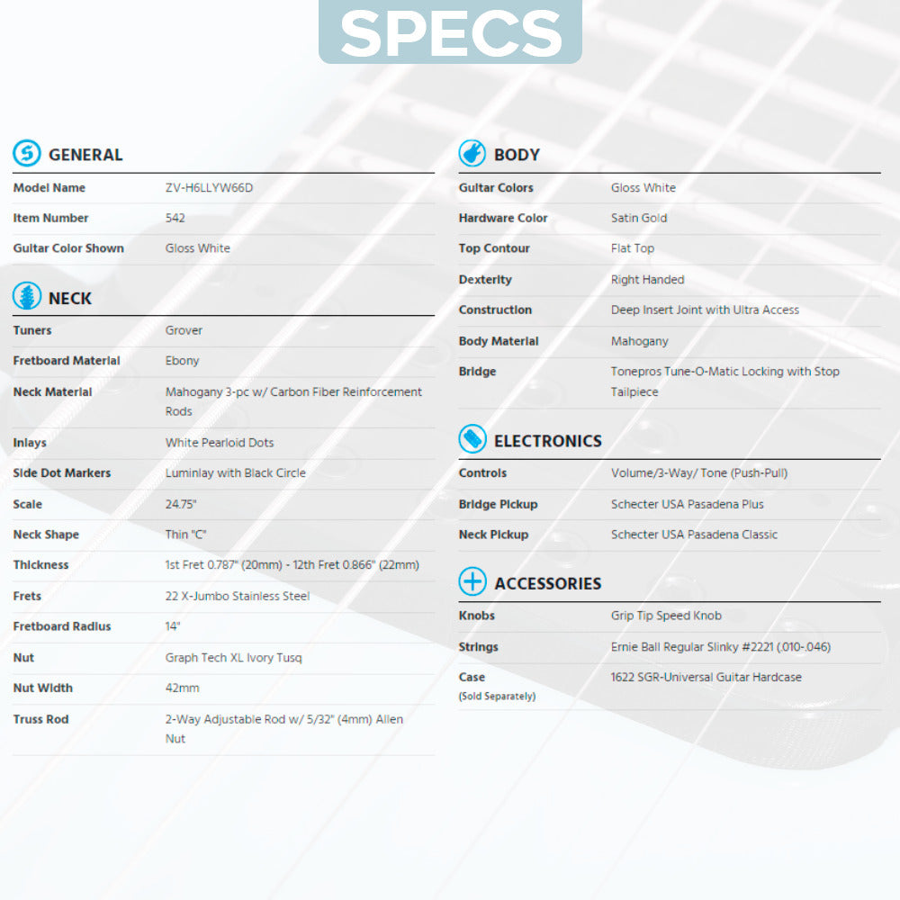 Schecter ZV-H6LLYW66D Electric Guitar (Gloss White) with Hardshell Case Bundle