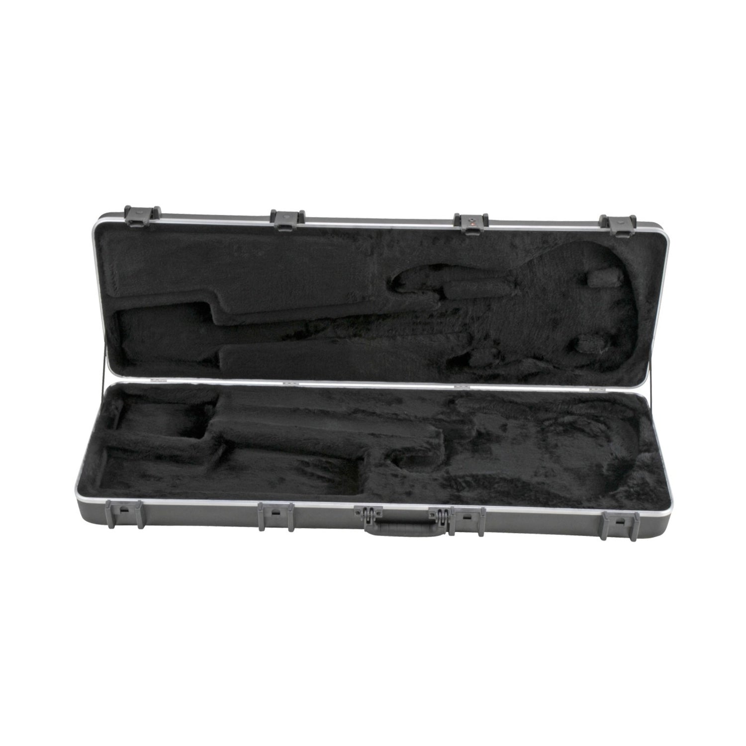 Previously manufactured exclusively for Fender Corporation, the popular Precision / Jazz bass case is now available only from SKB. The 1SKB-44PRO Rectangular Electric Bass case accommodates P and J styled guitars, with a rigid EPS, plush-lined insert for a secure fit to the body and proper neck support. A large accessory compartment for picks, strings, or a slide is also included.