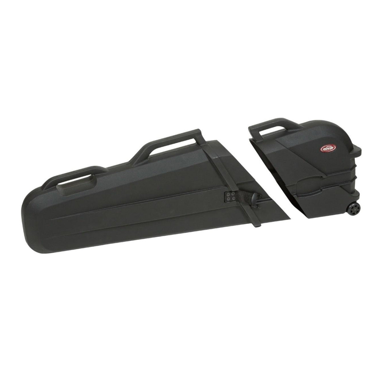 The 1SKB-44RW ATA Electric Bass Case is re-designed to accommodate a secure closure with the new TSA recognized strap closure to meet the needs of the traveling musician. It has a Roto molded for durability along with an ergonomic handle and wheels at the base for easy transport. The case has a TSA locking strap for additional security.
