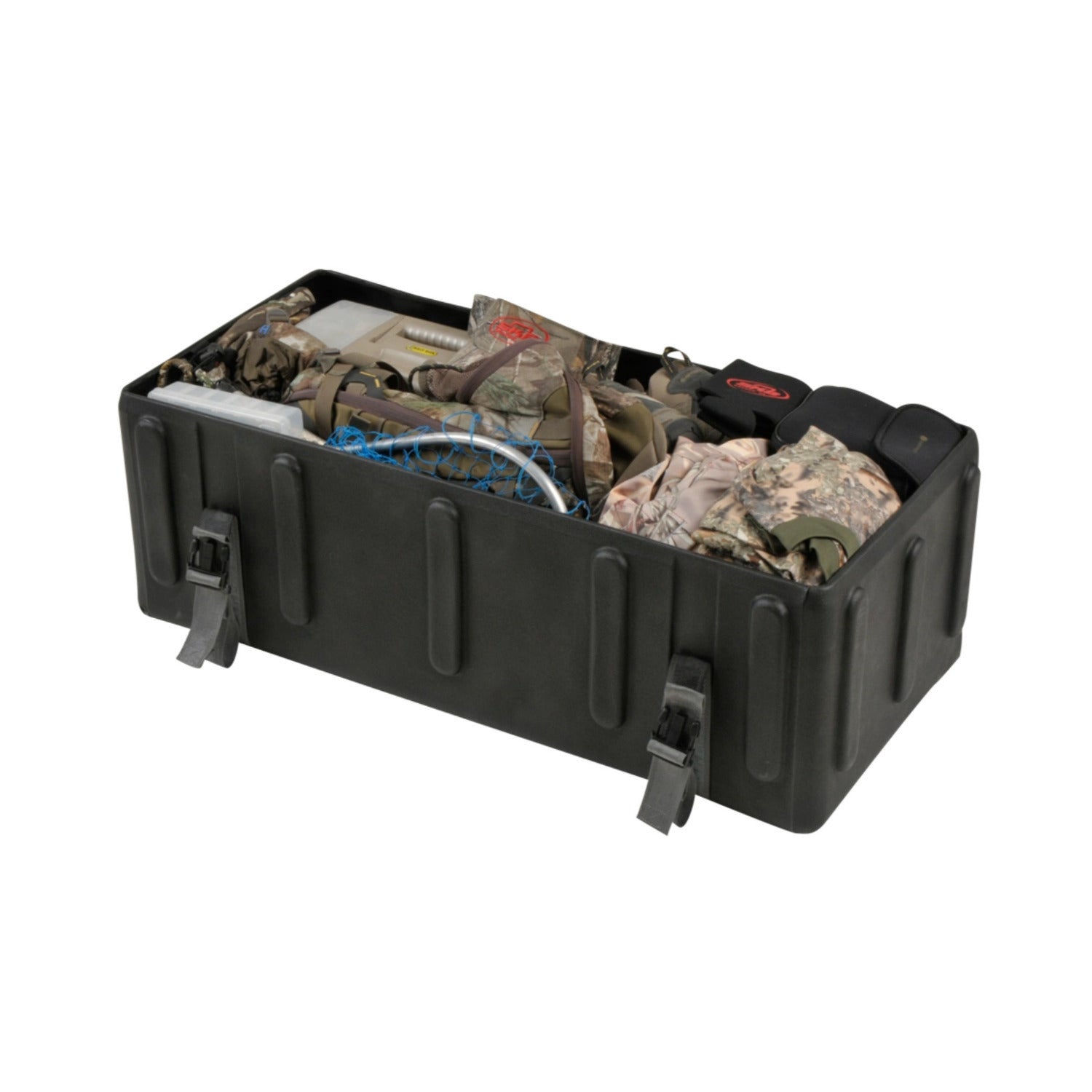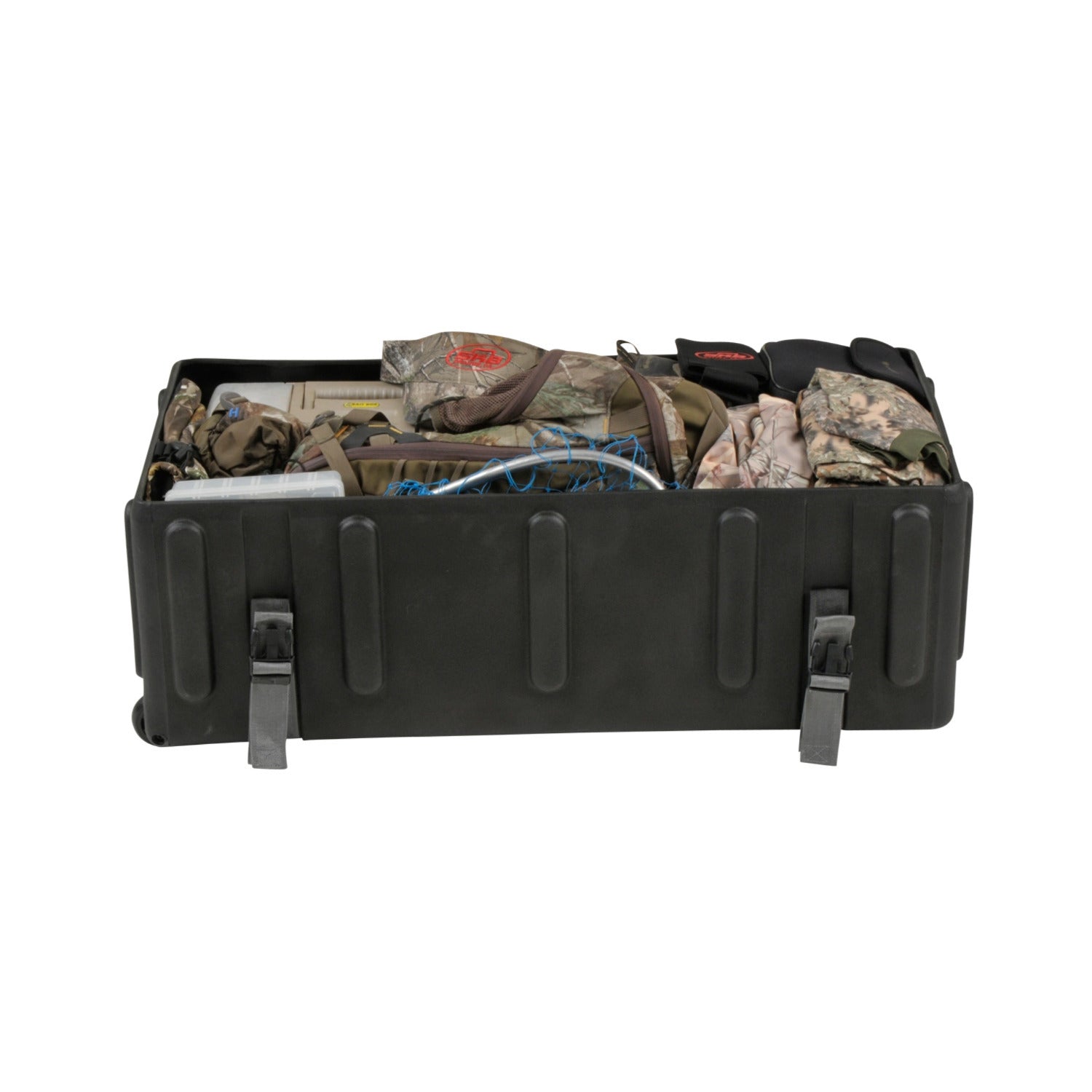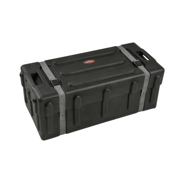 The SKB-DH3315W Mid-sized Drum Hardware Case is a rotationally molded of Linear Low Density Polyethylene, featuring a telescoping lift-off cover design with ergonomic built-in handles and nylon web cinch closures.