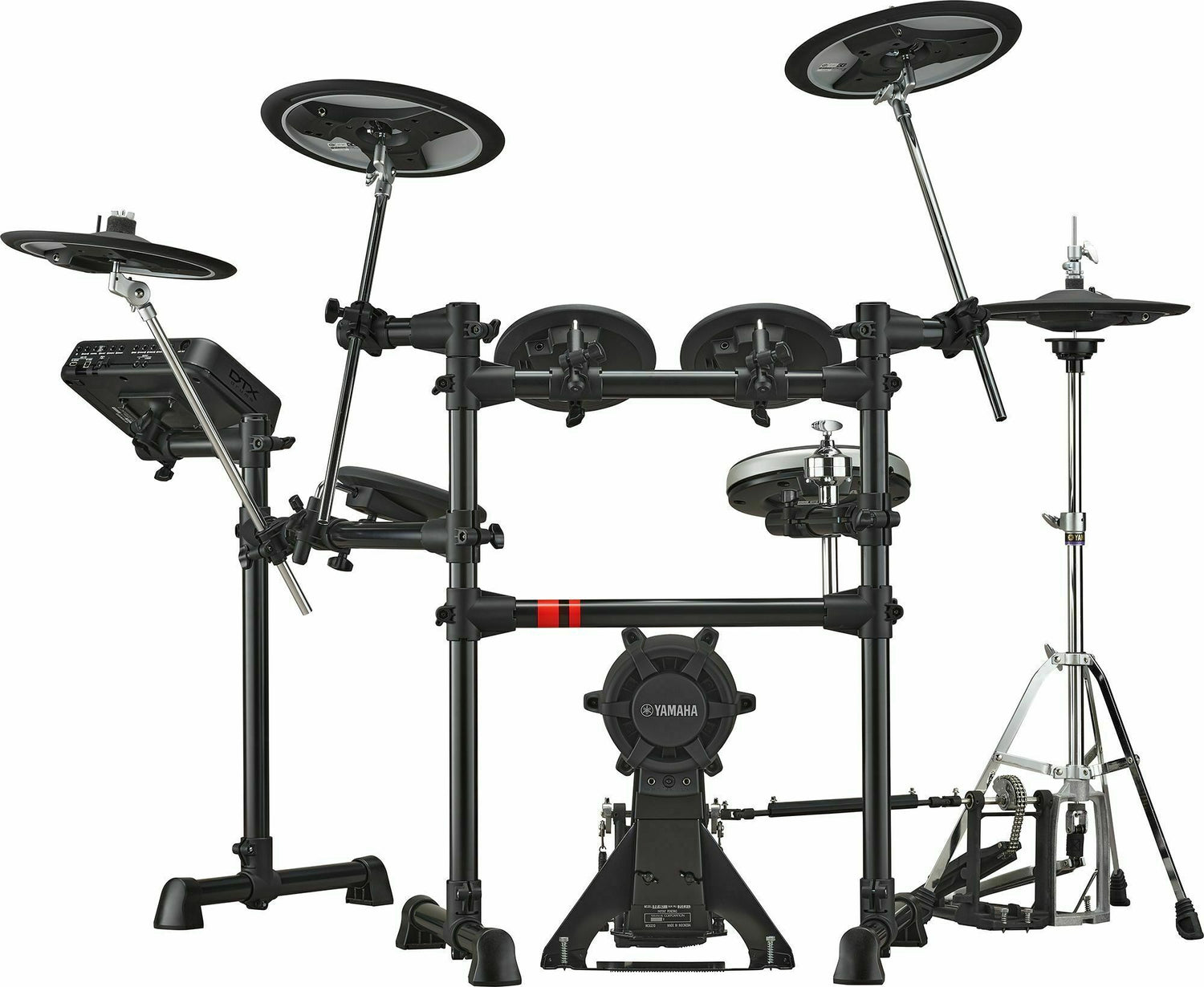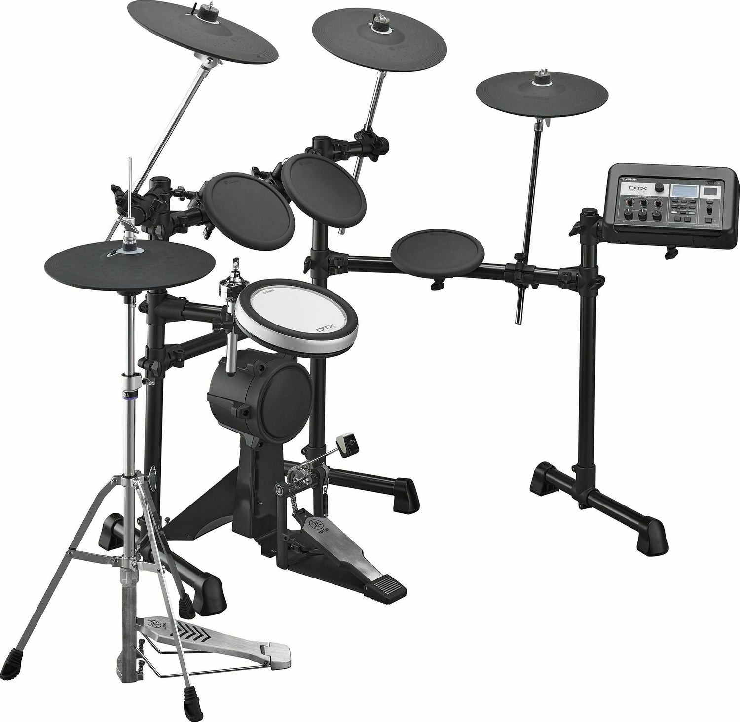 | Drum Kit Components | Module: DTX-PRO Pad: Snare: XP80 (8-inch) TCS head 3-zone pad Tom 1, 2: TP70 (7-inch) Rubber head 1-zone pad Floor Tom: TP70 (7-inch) Rubber head 1-zone pad Bass Drum: KP90 (7.5-inch) Rubber head with multi-layer cushion Hi-Hat: RHH135 (13-inch) 2-zone pad Crash Cymbal 1: PCY135 (13-inch) 3-zone pad Crash Cymbal 2: PCY135 (13-inch) 3-zone pad Ride Cymbal: PCY135 (13-inch) 3-zone pad Hi-Hat Stand: HS650A Rack System: RS6 |