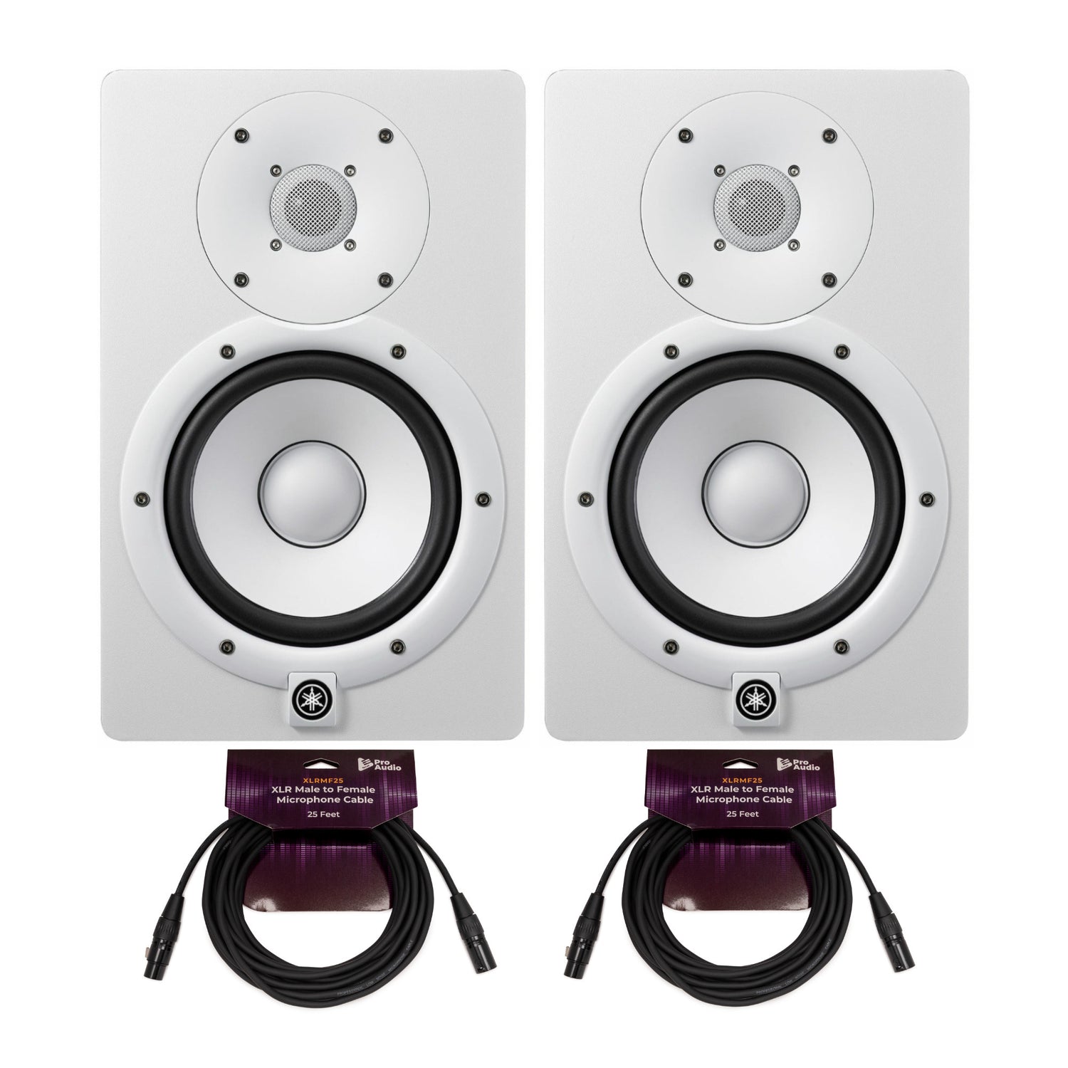 YAMAHA HS7W 6.5 Inch Powered White Studio Monitor 2 Pack with 2 x Cable Bundle