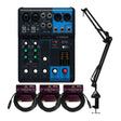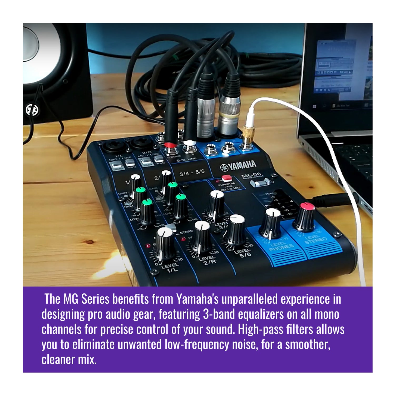 Yamaha MG06 6 Input Stereo Mixer with Microphone Stand and 3x XLR Cable Bundle