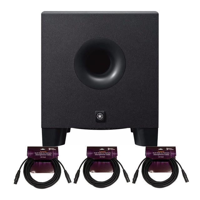 Yamaha HS8S 150 Watt Professional Powered Subwoofer Black with XLR Cables Bundle