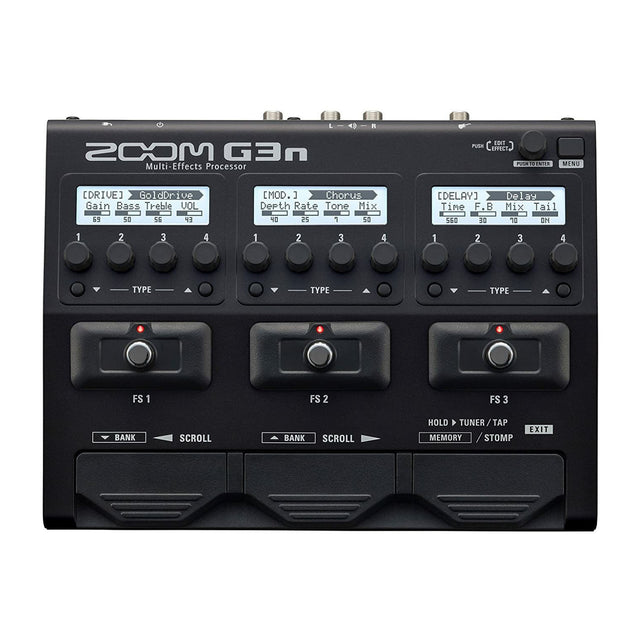 The Zoom G3n Multi-Effects Processor is a genre-defying multi-effects processor that gives you the versatility you need to experiment with new sounds and playing styles. Its built-in expression pedal, 80 second Looper, faithful amp and cabinet emulators, and extensive selection of effects and patches make it an essential addition to any pedalboard. With the G3Xn, breaking boundaries and achieving great sound has never been easier. The G3N is loaded with essential guitar sounds like overdrive, distortion, compression, EQ, delay, reverb, flanging, phasing, vibrato, and chorusing. Unique multi-effects such as Seq Filter, Reverse Delay, HD Hall, and OSC Echo are also included.